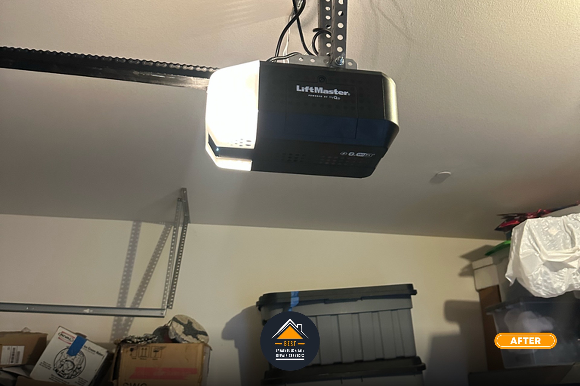 Our technicians installed a LiftMaster 2420L chain opener with a heavy-duty rail system, performed comprehensive maintenance and lubrication, and completed door balance verification. The 7-point residential inspection confirmed operational integrity before final customer acceptance, and we also address issues like Garage Door Off Track Repair to ensure smooth, aligned operation throughout the entire system.