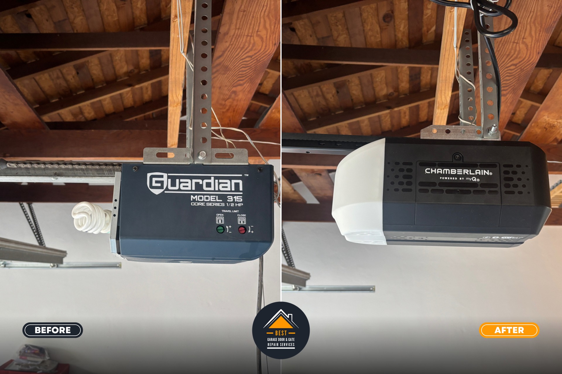 We safely removed and disposed of the old garage door opener unit and installed a premium Chamberlain belt drive system designed for superior performance and quiet operation. Our technicians carefully balanced the garage door to ensure smooth, safe operation and proper weight distribution on the new opener mechanism.