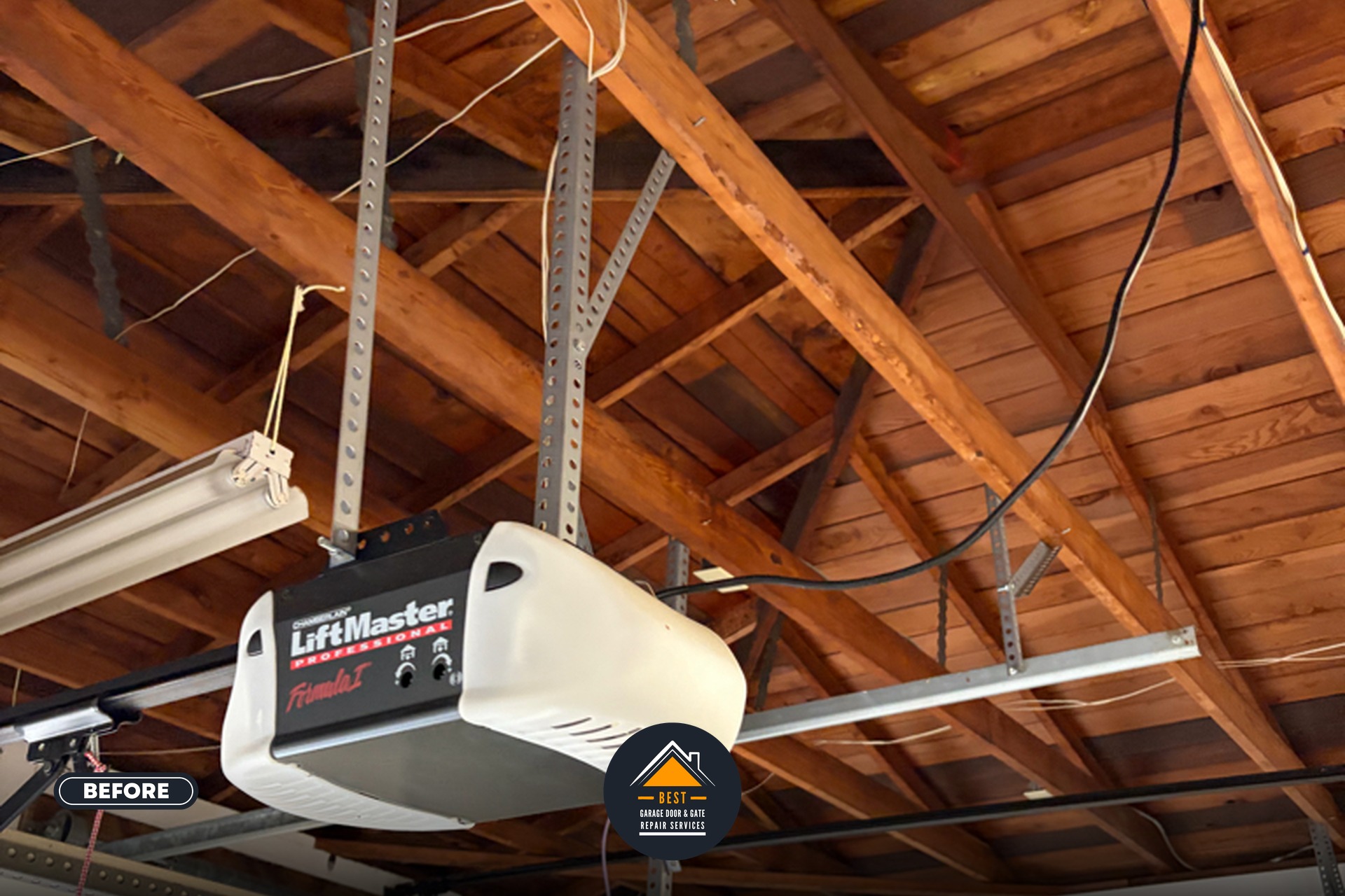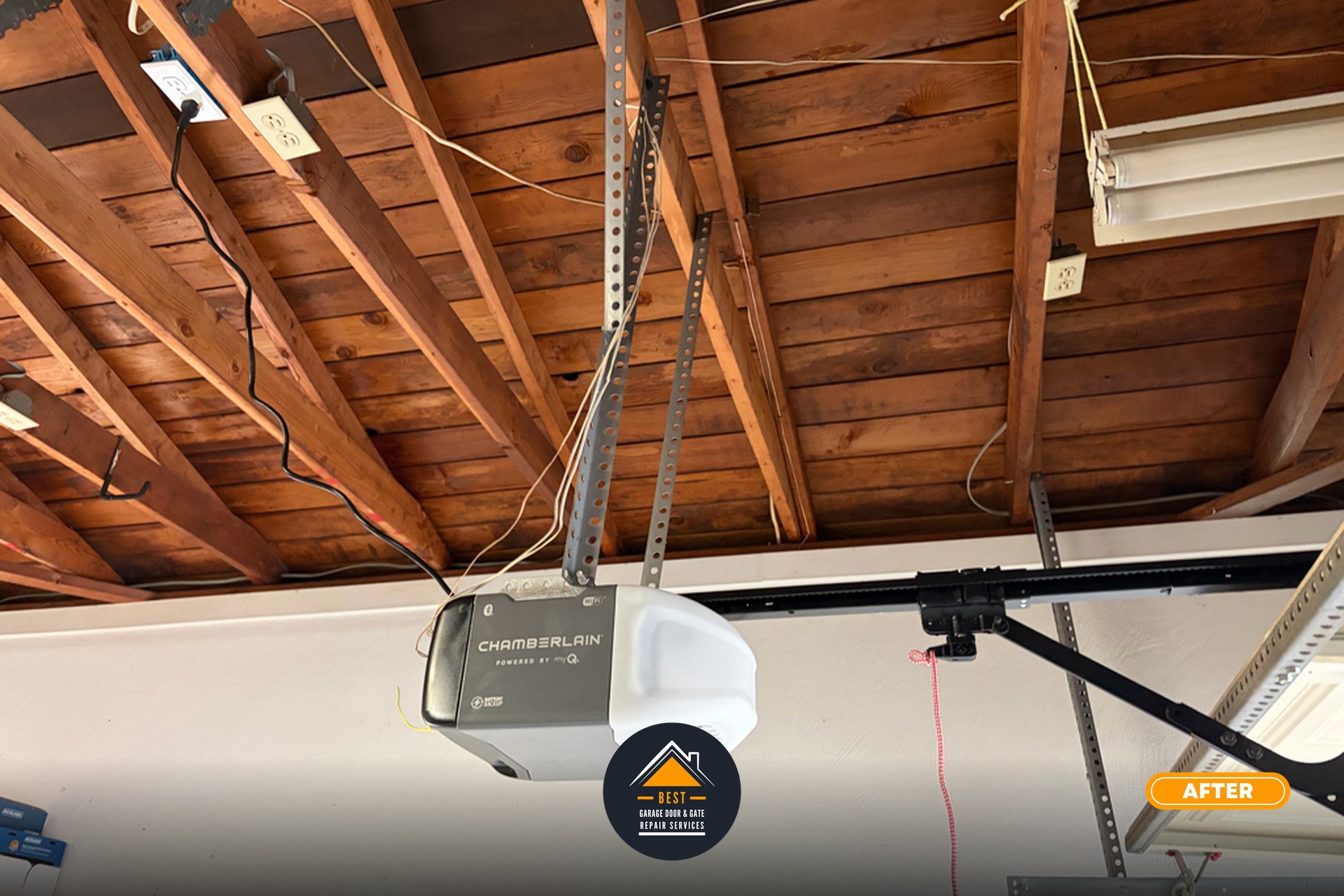 We removed and properly disposed of the old garage door opener unit, then installed a new Chamberlain belt opener with a heavy-duty belt rail system designed for premium performance and safety. Our technicians performed complete door balance adjustments to ensure optimal operational integrity and extend the lifespan of the new opener system.