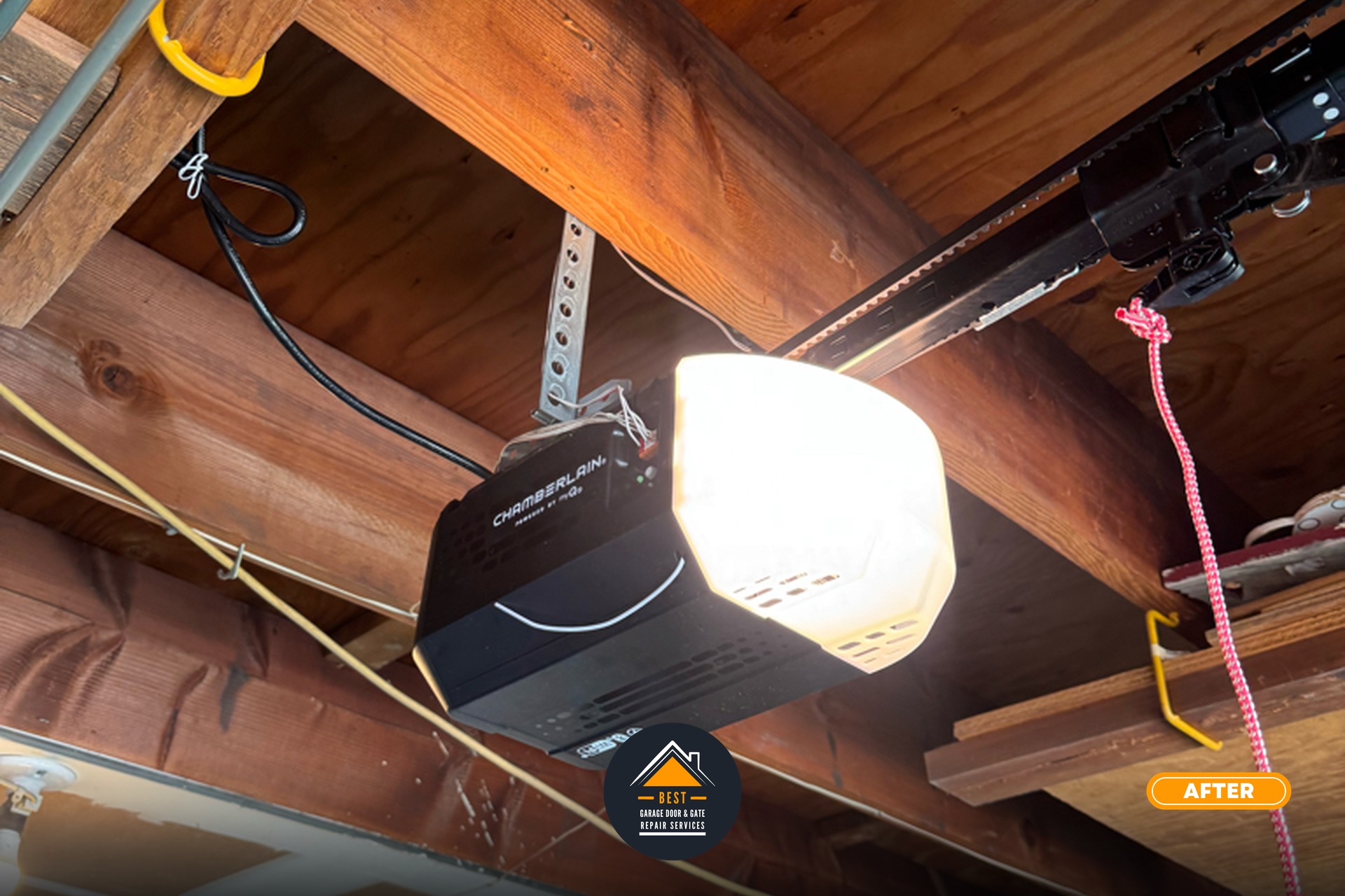 Our team completed a comprehensive garage door opener installation for a residential property in Oceanside, California 92056. The project involved removing the outdated unit and installing a premium Chamberlain belt opener system with heavy-duty rail components. Just as we handle Commercial Garage Door Repair with precision, we brought the same professional standards to this residential upgrade.