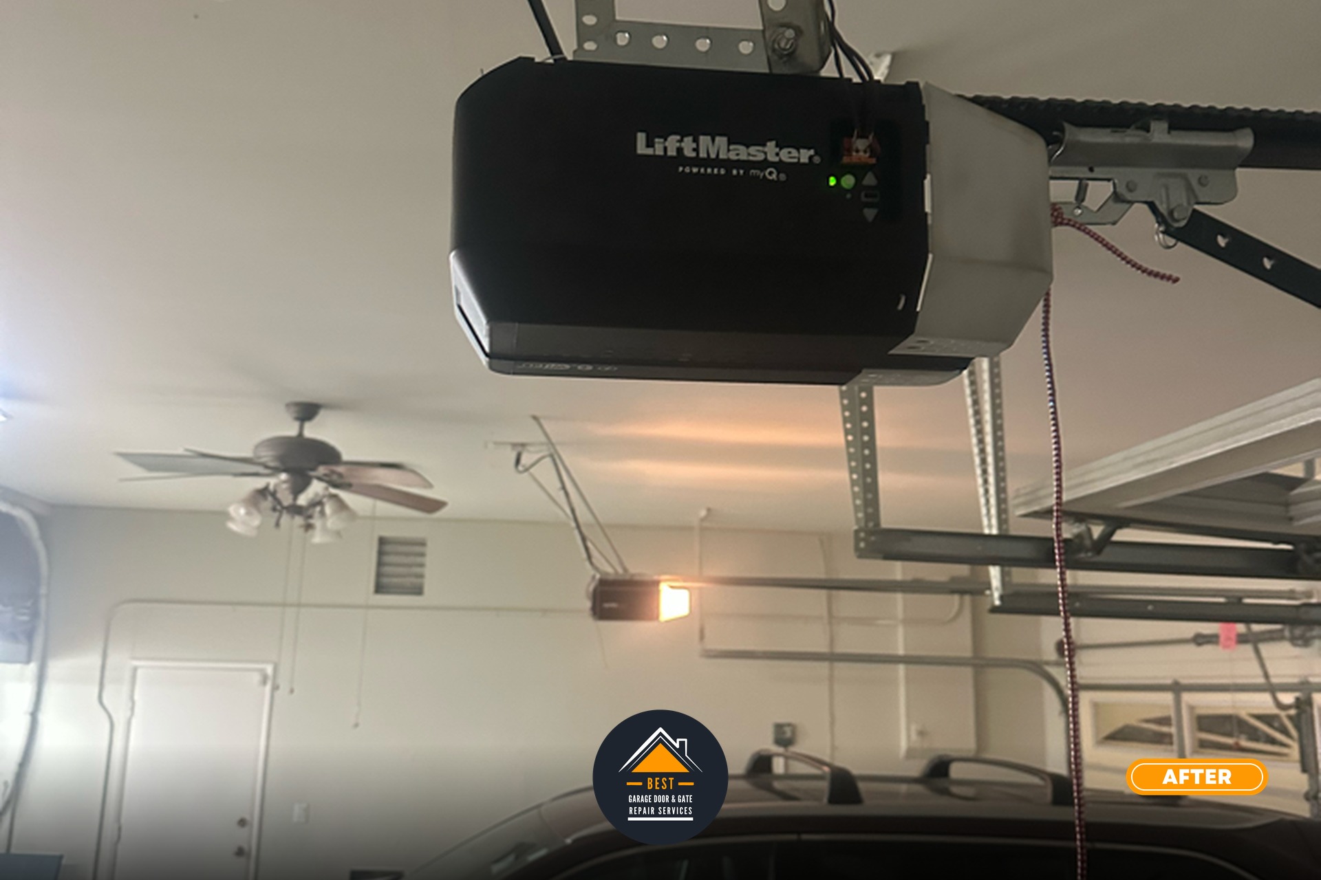 We installed a LiftMaster 2420L chain drive opener with a heavy-duty rail system, ensuring smooth and reliable operation for years to come. Our technicians performed a complete 7-point residential inspection, carefully removed and disposed of the old unit, and conducted thorough maintenance and lubrication of all moving components.